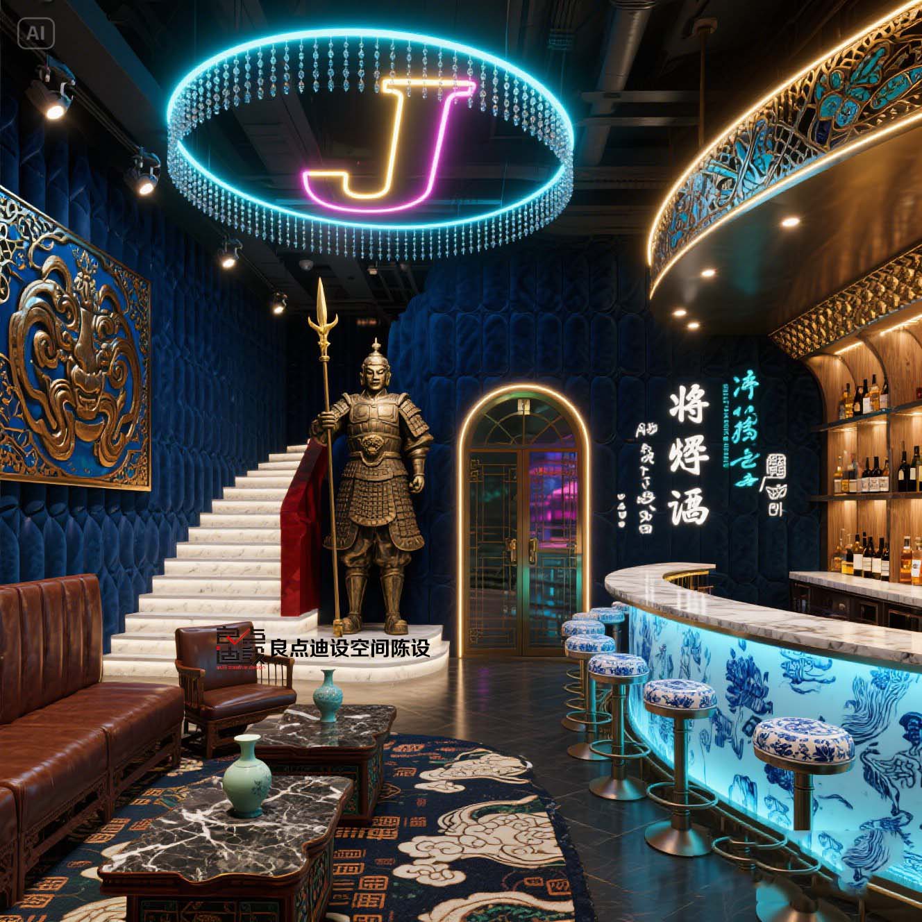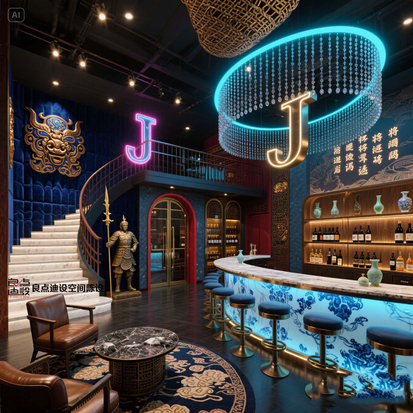 ??藍(lán)金CP暴擊!這家酒吧軟裝設(shè)計(jì)太上頭了!