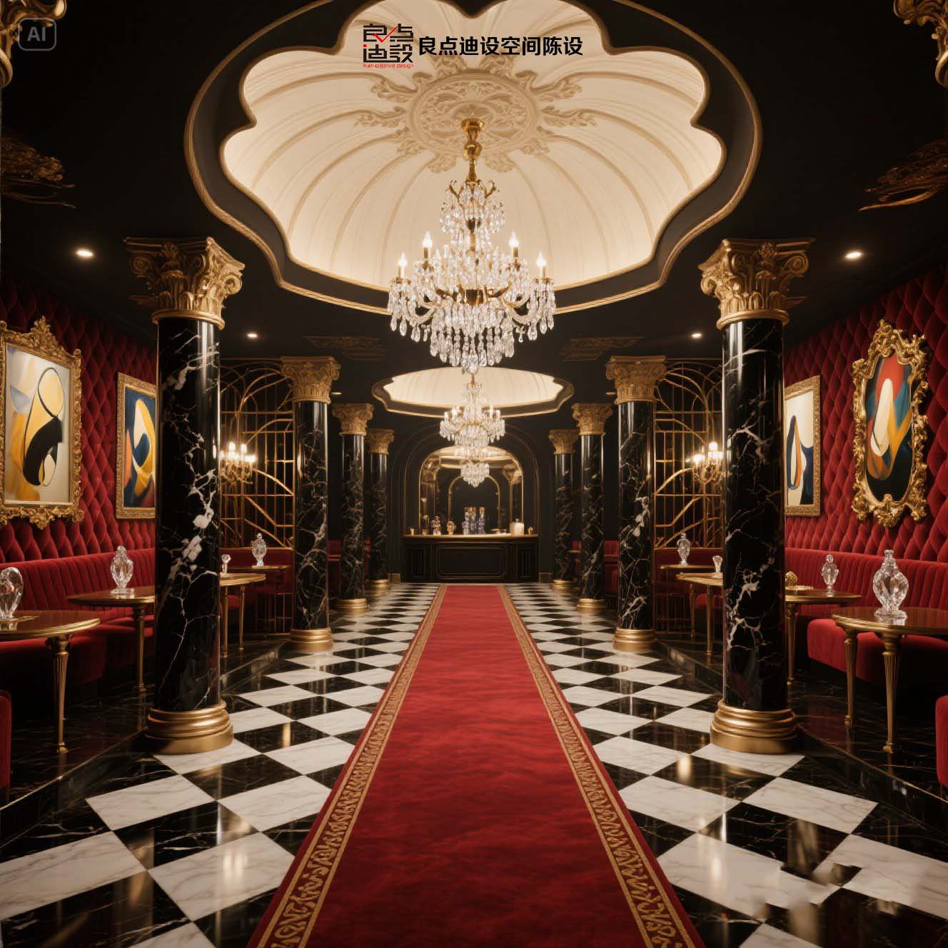 酒吧軟裝教科書!黑金穹頂+紅絲絨沙發(fā)裝修軟裝設(shè)計(jì)直接封神