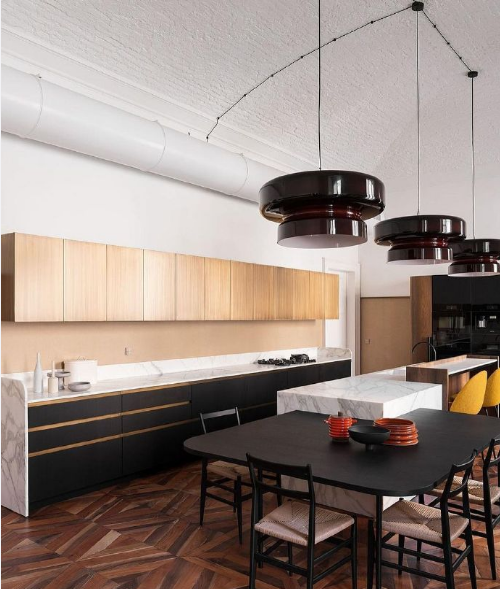 保持傳統(tǒng)別墅軟裝飾設(shè)計(jì)和當(dāng)代裝飾風(fēng)格,往往需要聚光燈。保持與當(dāng)代的氛圍,重復(fù)不同顏色和紋理的窗戶顏色。綠寶石組合家具和一對灰綠色椅子活躍的生活空間,雕塑帶來了一個(gè)綠色的植物餐廳...
