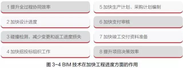 具體講,BIM技術(shù)可在以下幾個(gè)方面對(duì)加快工程進(jìn)度起到非常關(guān)鍵的作用(如圖3-4)。