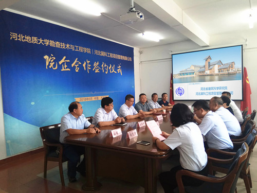 2018年6月13日,公司與河北地質(zhì)大學(xué)勘查技術(shù)與工程學(xué)院舉行了院企合作簽約儀式。公司總經(jīng)理郭建明,副總經(jīng)理宋俊嶺、谷耀杰、侯克芳和各部門經(jīng)理以及院方河北地質(zhì)大學(xué)勘查技術(shù)與工程學(xué)院院長(zhǎng)碩良勛、副院長(zhǎng)宋雪琳、實(shí)驗(yàn)中心主任李治廣、教研室副主任諶會(huì)芹、副教授解詠平出席了簽約儀式。
