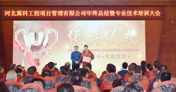 2019年1月20日, 河北冀科工程項目管理有限公司2018年年終總結(jié)暨專業(yè)技術(shù)培訓(xùn)大會在河北省建筑科技研發(fā)中心召開。河北省建筑市場發(fā)展研究會副會長、市建筑協(xié)會副會長、秘書長王洪祥,華北理工大學(xué)建筑工程學(xué)院院長王興國,黨委書記王愛民,副院長徐國強,副院長陳建偉,副書記、副院長高林,唐山理工建筑設(shè)計研究院院長張玉敏,河北地質(zhì)大學(xué)勘查技術(shù)與工程學(xué)院賈學(xué)民教授、解詠平教授,河北科技大學(xué)張學(xué)輝教授,中持水務(wù)股份有限公司投資部楊建芳經(jīng)理應(yīng)邀出席了會議,公司全體員工參加了會議。