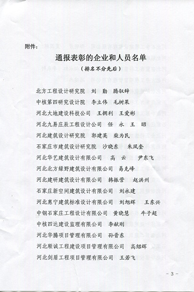 我公司員工康志平參加7.19洪澇災(zāi)害農(nóng)村危房調(diào)查核實(shí)安全鑒定工作受到石家莊市住房和城鄉(xiāng)建設(shè)局表彰