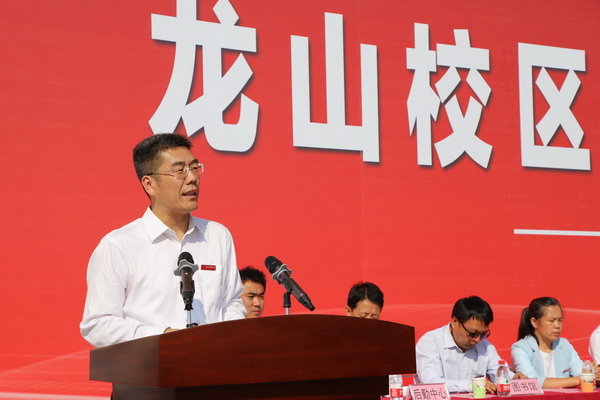 揭牌儀式上,校黨委書記楊紹普代表學(xué)校全體師生員工對出席儀式的領(lǐng)導(dǎo)和嘉賓表示熱烈的歡迎。他指出龍山校區(qū)的如期啟用,離不開校老領(lǐng)導(dǎo)前期打下的堅(jiān)實(shí)基礎(chǔ),離不開全體教職工的辛勤付出,更離不開包括元氏縣在內(nèi)的各級政府的大力支持,附近村鎮(zhèn)領(lǐng)導(dǎo)和鄉(xiāng)親們的理解幫助,施工與冀科公司的精心組織。強(qiáng)調(diào)龍山校區(qū)啟用在校發(fā)展史上具有重要里程碑意義,打破了制約學(xué)校發(fā)展的空間瓶頸,為實(shí)現(xiàn)學(xué)校的內(nèi)涵發(fā)展、競爭力提升奠定了良好基礎(chǔ),新啟用的龍山校區(qū)將成為推動我校建設(shè)高水平知名特色大學(xué)的加速器。