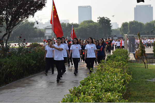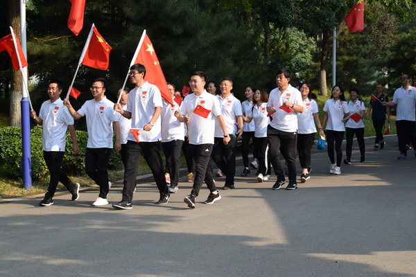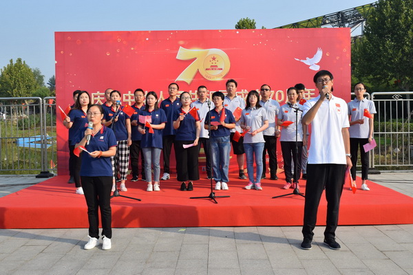 隨后,由冀科公司周益文領(lǐng)唱,參加健步走的全體人員合唱歌曲《我和我的祖國》,共同唱出對祖國的愛國情懷。