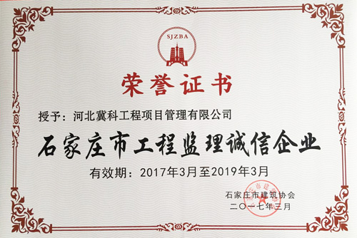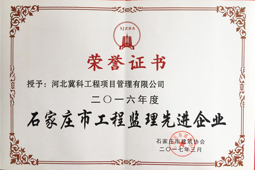 我公司被評(píng)為2016年度石家莊市工程監(jiān)理誠(chéng)信企業(yè)、先進(jìn)企業(yè)