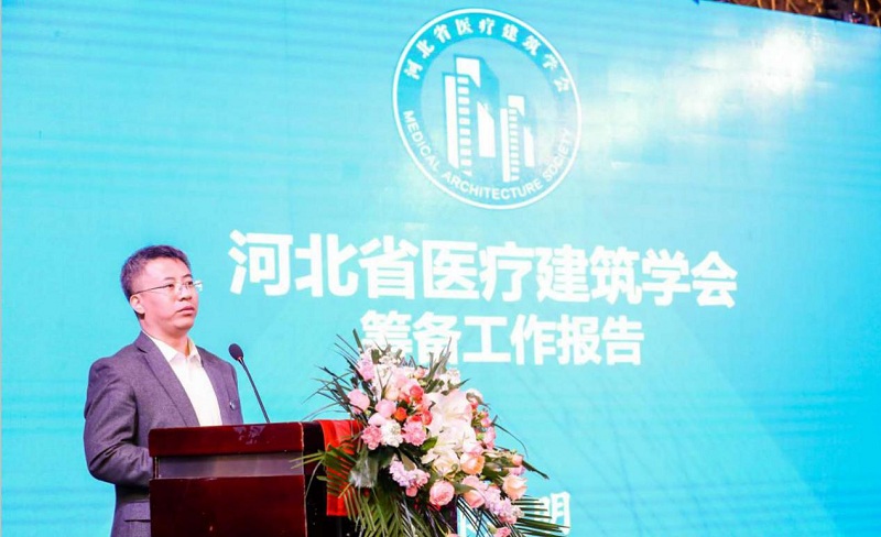 河北冀科工程項目管理有限公司總經(jīng)理郭建明代表河北省醫(yī)療建筑學會籌備組做籌備工作報告。