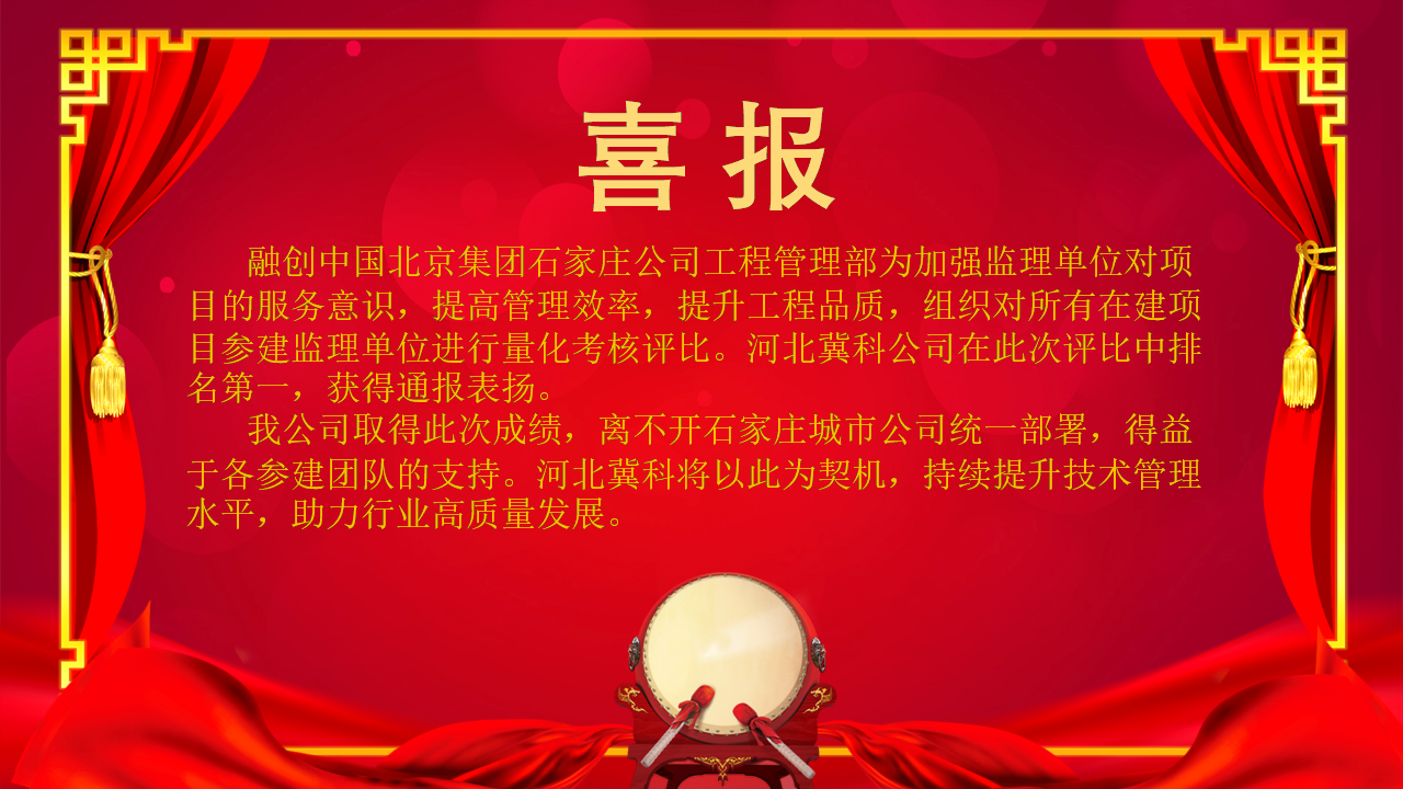 冀科公司在石家莊城市公司2021年度上半年監(jiān)理單位評價中獲得通報表揚