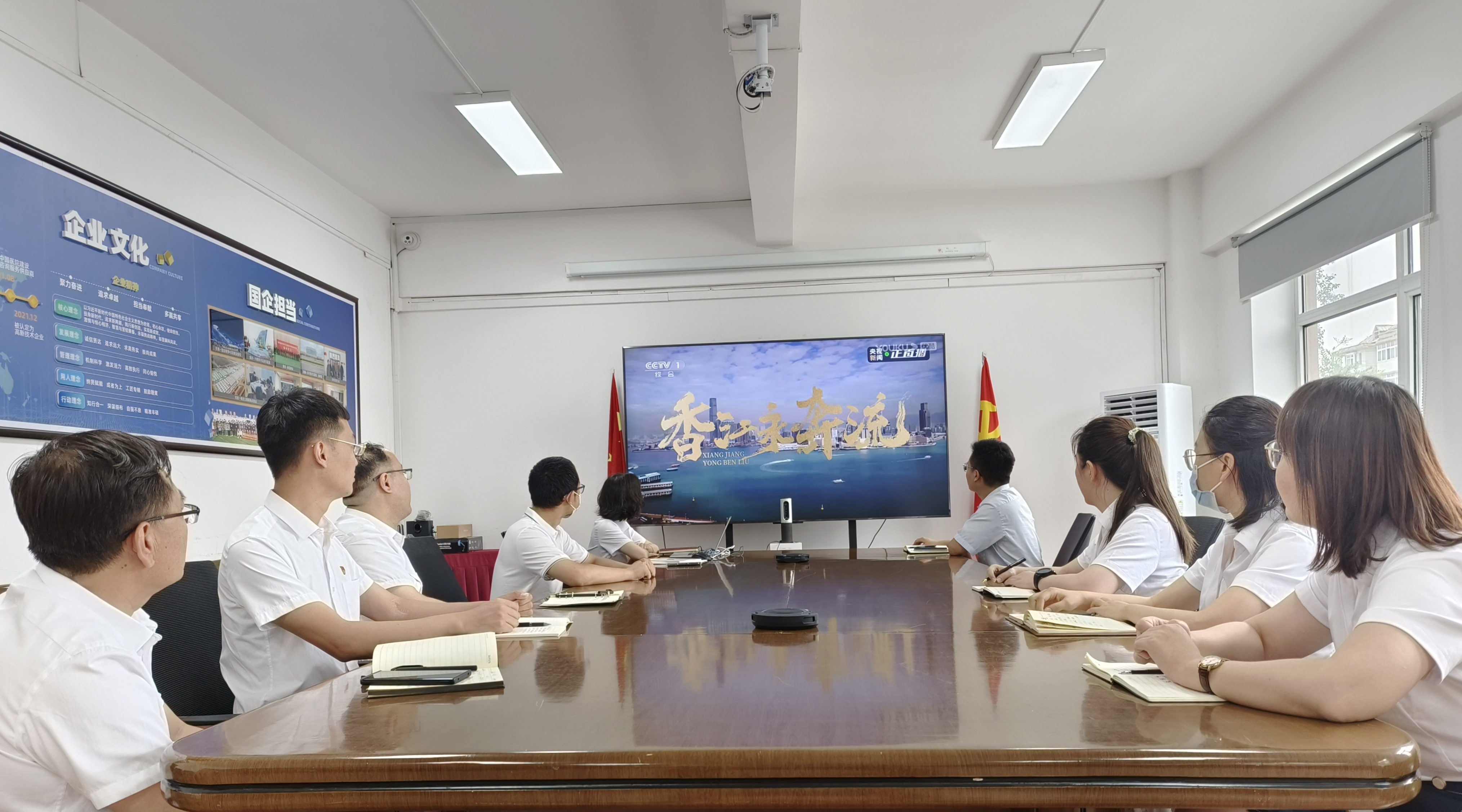 會(huì)議期間,大家一起觀看了《香江永奔流》——“共進(jìn)未來(lái)”,該專(zhuān)題片用大量事例證明“一國(guó)兩制”在香港的成功實(shí)踐,展現(xiàn)了今日香港積極融入國(guó)家發(fā)展大局、再創(chuàng)“東方之珠”新輝煌的征程。