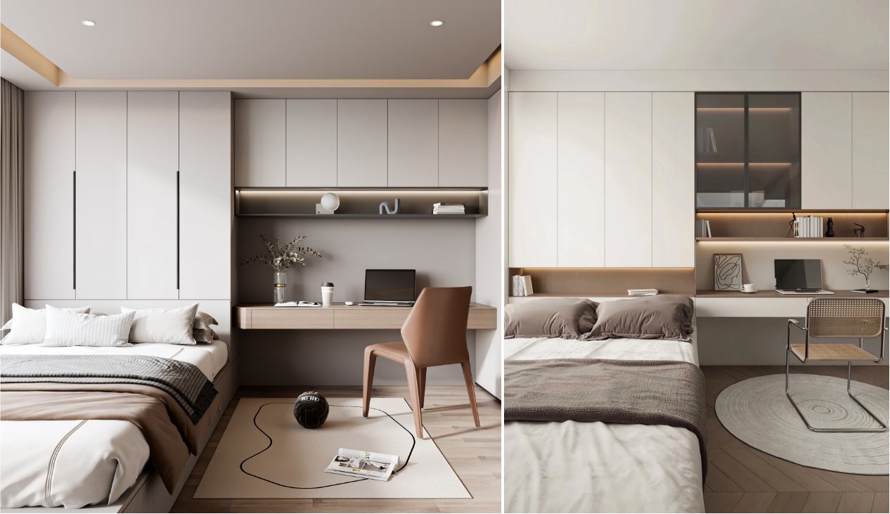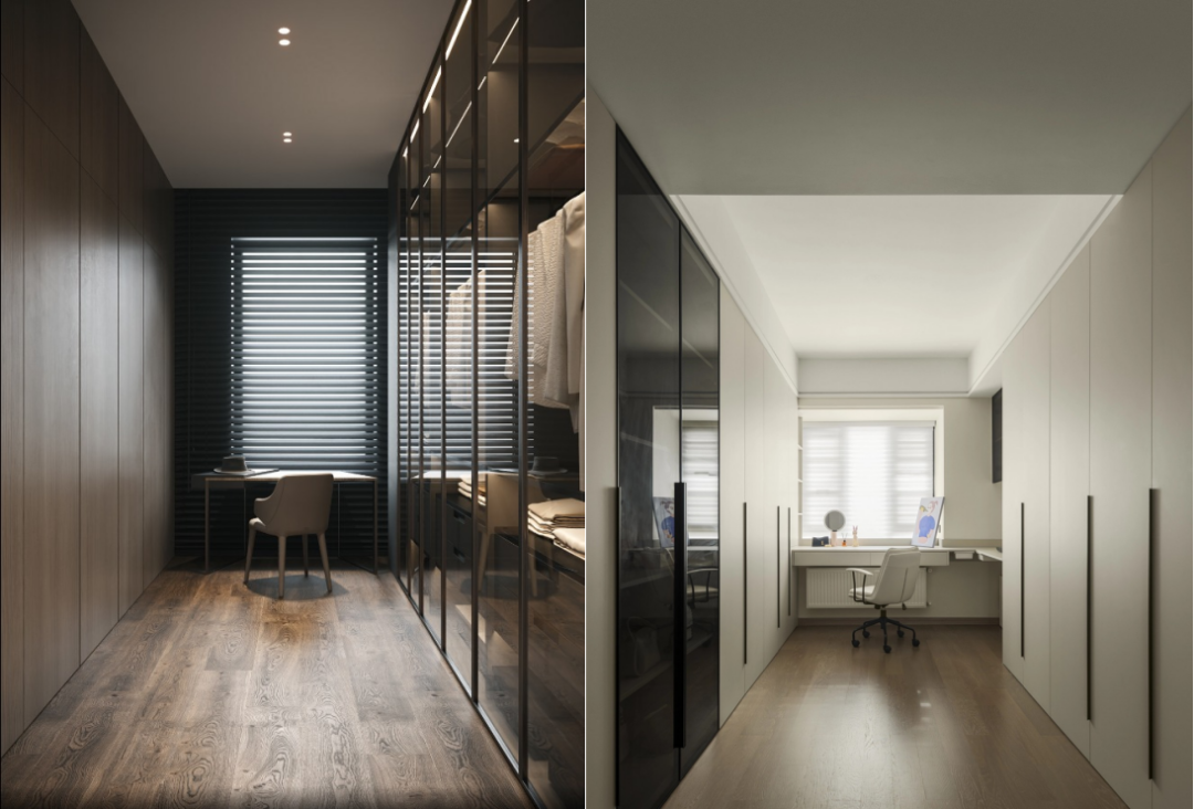 設(shè)計(jì)思路:基本不更改硬裝結(jié)構(gòu),在保留四個(gè)房間的前提下,增加各個(gè)空間的收納空間。北房間用來做多功能房間,以收納和辦公學(xué)習(xí)為主,保留居住的功能。