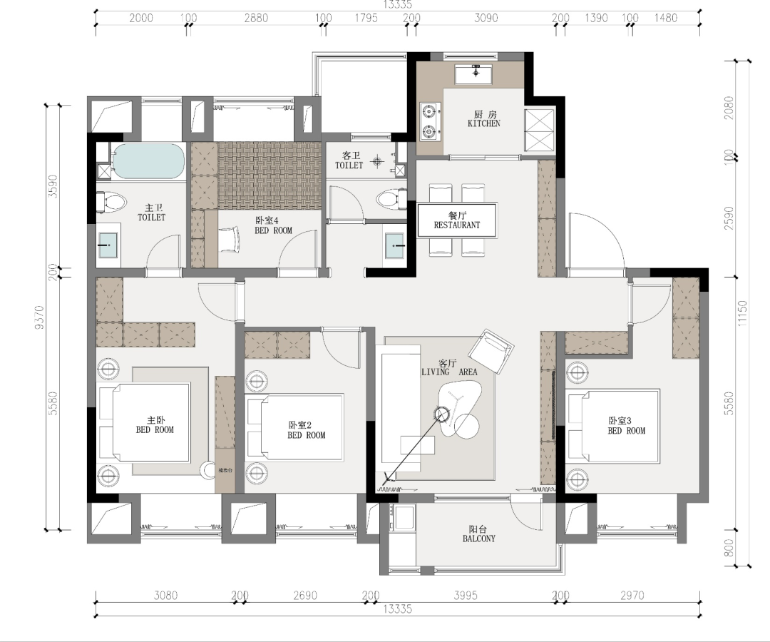 1、標(biāo)配4房2衛(wèi),滿足更多功能需求,可預(yù)留空間足夠;
