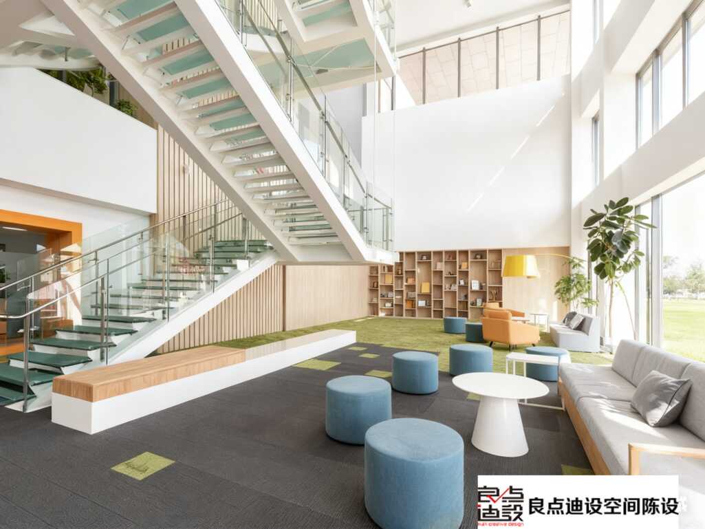 層疊之美:現(xiàn)代簡(jiǎn)約風(fēng)的活力中庭!神仙軟裝設(shè)計(jì)讓辦公室秒變高效顏值雙開掛??