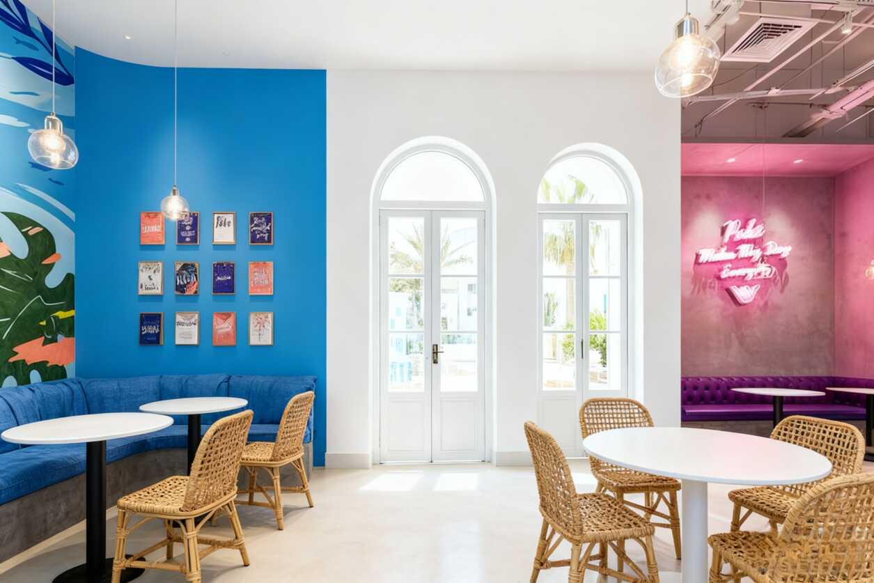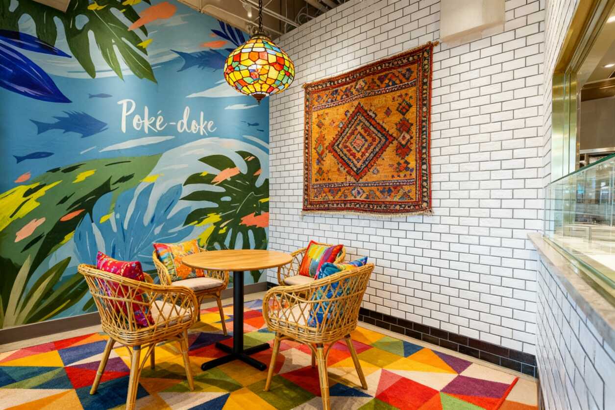 寶子們,這家專做波奇飯的“Poke-d”餐廳真是把我拿捏住了!一進(jìn)門就被整面藍(lán)色主題墻吸住眼球——翠綠棕櫚葉+躍動(dòng)大魚圖案直接帶你瞬移夏威夷海邊,中間那個(gè)“Poke-d”logo設(shè)計(jì)得賊有辨識(shí)度,海洋氛圍拉滿不說,拍照當(dāng)背景板簡直一絕!