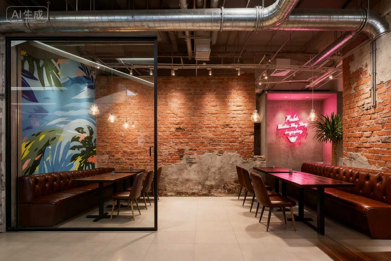 寶子們!今天帶你們云打卡這家工業(yè)風餐廳,一進門就被這高級感狠狠拿捏了!水泥墻面+水泥地,搭配得當反而顯得特別有質感——不是那種毛坯房的粗糙感,是那種經(jīng)過精心設計的簡約時尚范兒!