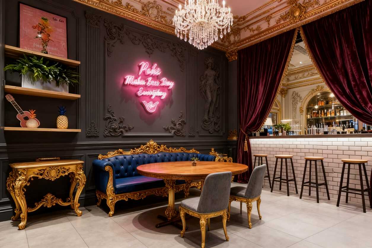 偷偷告訴你們幾個神仙機位:紅墻霓虹燈前拍剪影絕了,彩色墻繪當背景超級出片,吧臺那個透明玻璃區(qū)也很有故事感。晚上來拍照效果更棒,燈光一打,隨手一拍都是高級感大片!