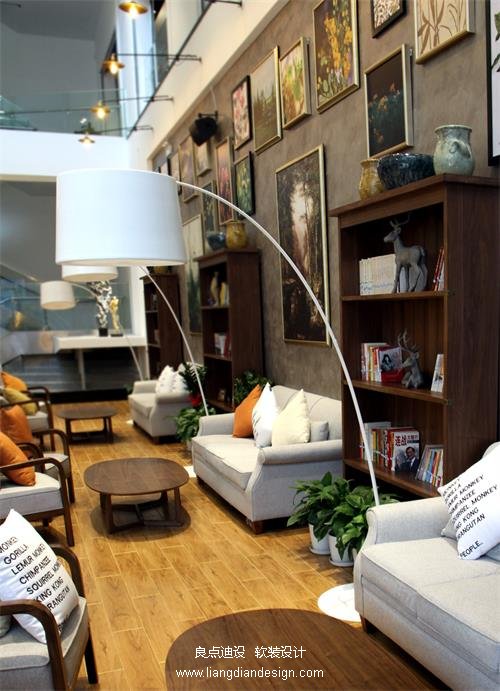 在軟裝設計中將山水的大自然靈性融入空間中,使其翔動一種源自自然的藝術氛圍,山水、竹子、流沙、雨花石、綠植及原木等這些元素運用其中,使整個空間一步一景,一份寧靜的北歐風情。裝飾材料主要有木材、石材、玻璃和鐵藝等,都無一例外地保留這些材質的原始質感。它所呈現(xiàn)出來的是非常接近自然的原生態(tài)的美感,沒有一點多余的裝飾,一切材質都袒露出原有的肌理和色澤。