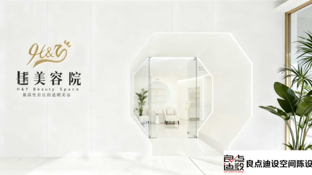 往里走,撲面而來的就是那股子簡約清爽的調(diào)調(diào)。墻面全是純白色,干凈得像一張畫布,讓人立馬放松下來。左邊墻上,金色品牌標(biāo)志和黑色店名搭配得那叫一個絕——金色提亮氣質(zhì),黑色穩(wěn)住場子,一下就把格調(diào)抬上去了。仔細(xì)瞅瞅,品牌叫“良點 H&Y”,slogan是“做高性價比的透明美容”,嗯,連文案都這么戳心,軟裝果然和理念一脈相承。