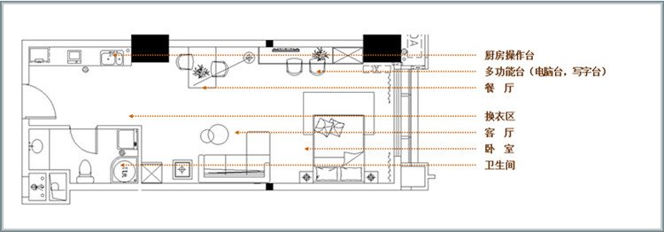 此空間為東茂國際酒店式公寓樣板間項目,整體空間運用現(xiàn)代簡潔的線條,融入中國風(fēng)元素,具有古典傳承又有時尚現(xiàn)代之風(fēng)。色彩上運用高級灰,象牙白搭配高貴淡雅黃,讓空間亮麗又不失典雅。頂部搭配線條簡潔的新中式風(fēng)格燈具,再點綴山水寫意的掛畫使空間多一份雅致,客廳配飾具有優(yōu)雅造型的釣魚燈,使空間意境幽遠(yuǎn),穩(wěn)重中透出活潑,餐區(qū)墻面點綴精致的藍(lán)色金色搭配的裝飾瓷盤體現(xiàn)出居者生活品味,書桌上放懸掛隸書條幅文化涵養(yǎng),透出安然之態(tài),在這樣的空間之中定能感覺到中華之美。