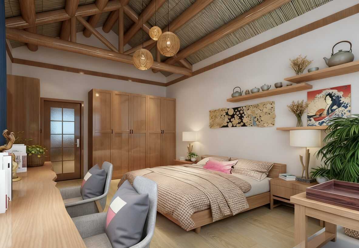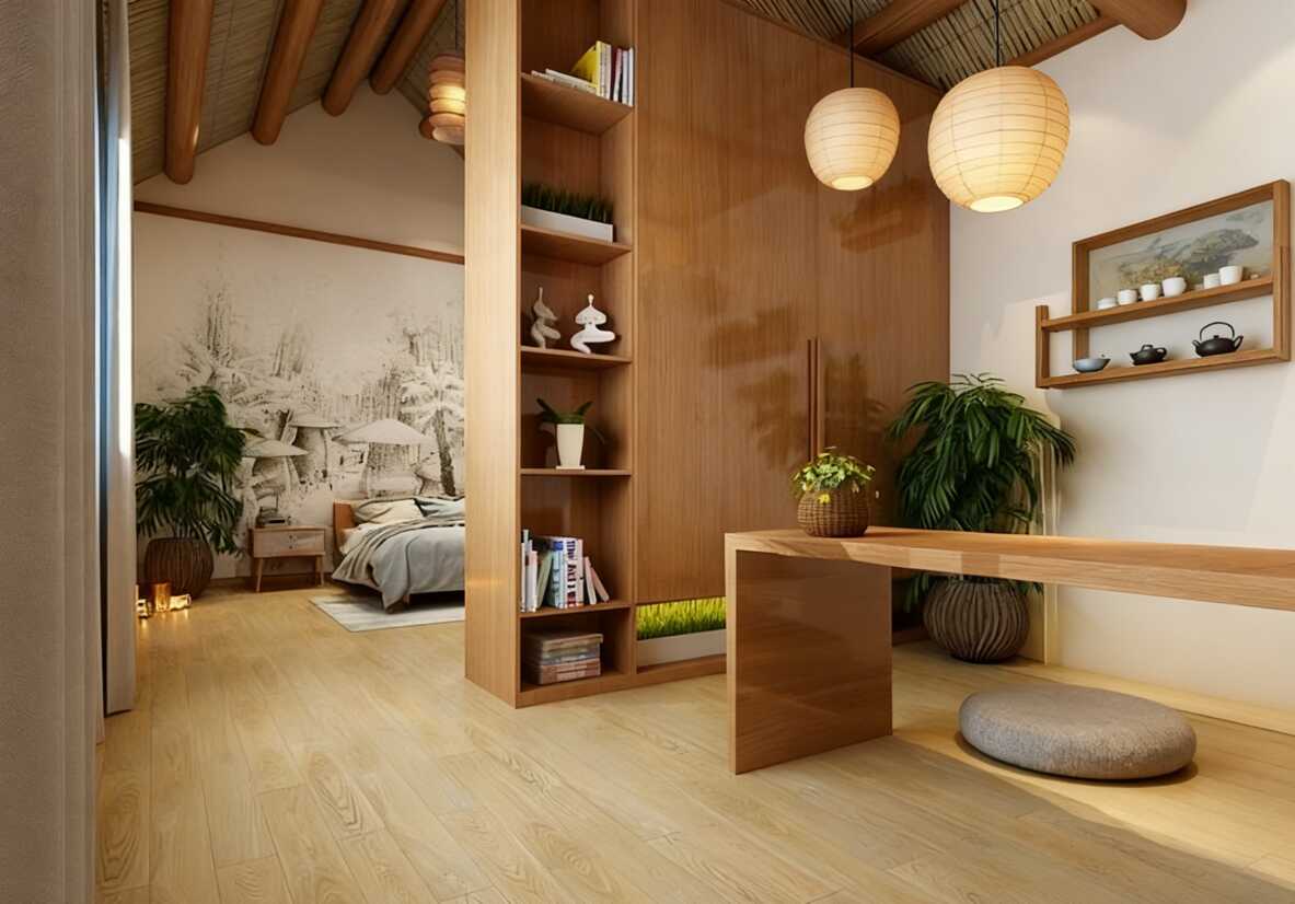 日式禪意民宿軟裝絕了!木質隔斷 + 茶器墻 + 紙燈,住進來就像躲進了深山禪院