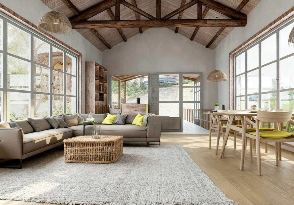 鄉(xiāng)村侘寂風民宿軟裝設計絕了!大窗 + 藤編 + 亮黃點綴,住進這里像把山野搬進了家