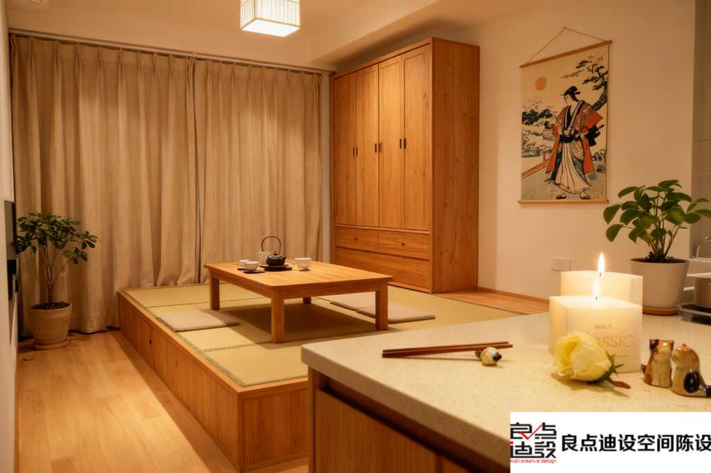 臥室部分更注重靜謐感。床架選木質(zhì)款,配上素色棉麻床品,觸感柔軟舒服。床頭柜極簡設(shè)計,放盞小臺燈和香薰,助眠氛圍直接拉滿。儲物靠墻的嵌入式衣柜,門板無把手設(shè)計,視覺上干凈清爽。記住,小空間軟裝一定要“藏”,雜物收起來,才能顯大又高級。