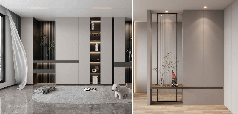 入戶玄關(guān)讓人眼前一亮,鞋柜底部留空,放鞋方便又美觀,鞋柜底部可以安裝聲控?zé)魩В萌⌒訒?huì)更加方便,同時(shí),聲控?zé)魩б材芙o生活增加更多的趣味性,把換鞋凳組合到鞋柜里,做成一體的設(shè)計(jì)既能保持空間的美觀簡(jiǎn)潔,又能方便換鞋,也是一種比較流行的設(shè)計(jì),鞋柜中間留空,隨手置物很方便,也能讓玄關(guān)顯得沒有那么擁擠。