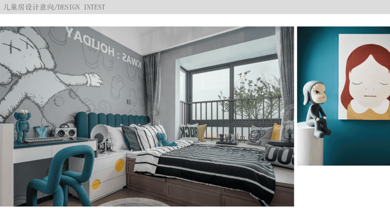兒童房 主要以學(xué)習(xí)空間為主,用軟裝飾品來(lái)區(qū)分性別,如果業(yè)主孩子年紀(jì)較小也可以將這個(gè)房間當(dāng)做親子互動(dòng)區(qū),小孩子都比較愛(ài)創(chuàng)造,那么可以設(shè)計(jì)一面黑板墻或者積木墻用來(lái)“亂涂亂畫(huà)”。