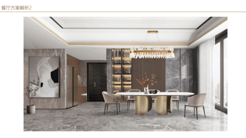 門廳入戶增加玄關(guān)儲物柜,解決換鞋、儲物、掛衣的問題??蛷d增加功能性的選擇,以沙發(fā)為隔斷,增加開放式書房,選擇整墻的收納架,再配上一張自帶高級感的書桌,輕松營造出有品位的學(xué)習(xí)工作環(huán)境。也可以當(dāng)作茶室來使用,隨時改變空間性質(zhì)。